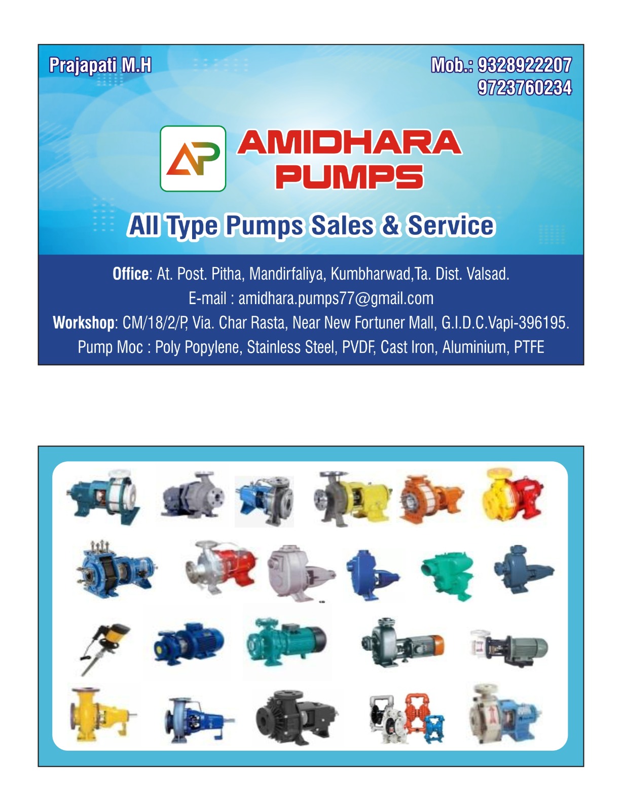 Established in the year 2002, at Ankleshwar, We AMIDHARA Pumps & Equipments, have inched forward as well recognized manufactures of Chemical Process Pumps & Equipments.
